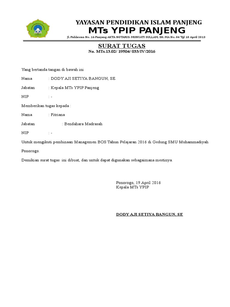 | Lihat Surat Tugas Bendahara Mts Pdf |