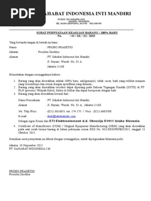 | Judul: Contoh Surat Pernyataan Jaminan Keaslian Barang |